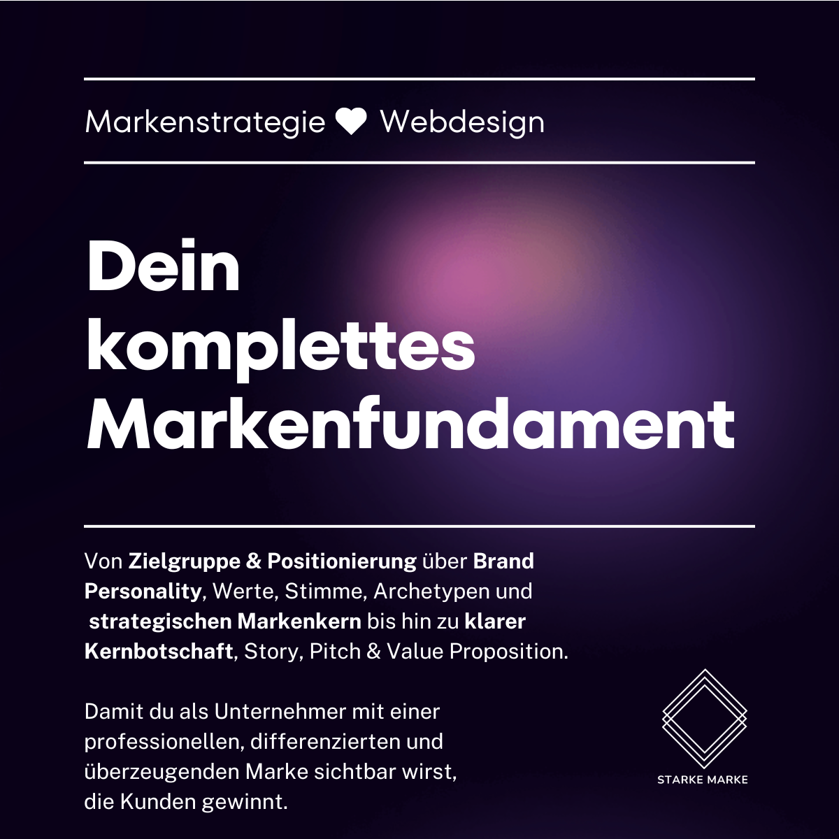 Dieses Markenfundament ist die Basis, auf der deine Website, dein Branding, dein Content und dein Vertrieb langfristig erfolgreich aufbauen.